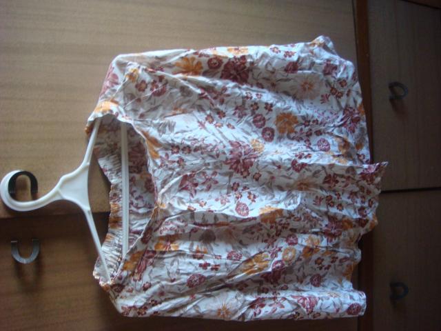 Labai fainų spalvų, iš priekio atrodo,lyg sijonas, laisvai krentantys, miela medžiagėlė, tokie vintage, aukštas liemuo :)
