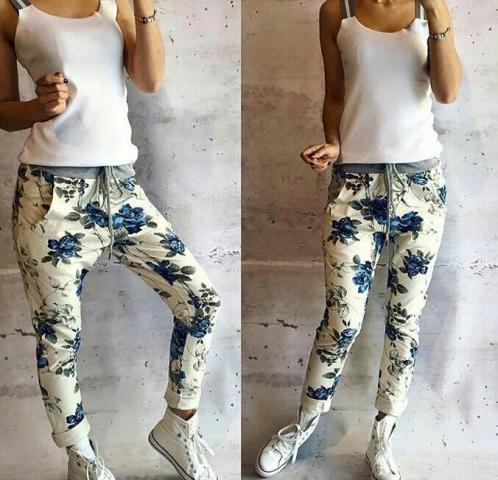Naujos gėlėtos kelnės,klynas trupučiuką kabantis,su kišenėmis.