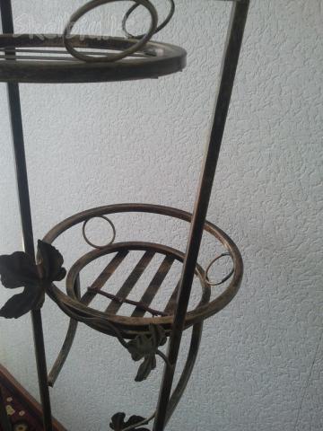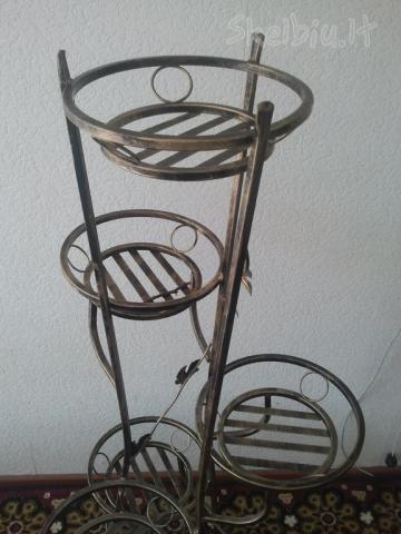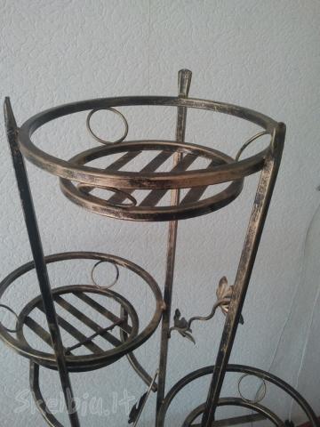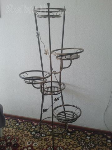 Gėlių stovas Naujas metalinis stovas 140 cm.aukščio,5 padai gėlėms. Spalva-sendinta aukso. Info tel.+37067188949 Kaina -100 Lt.