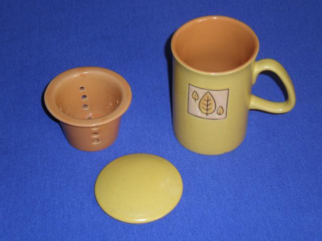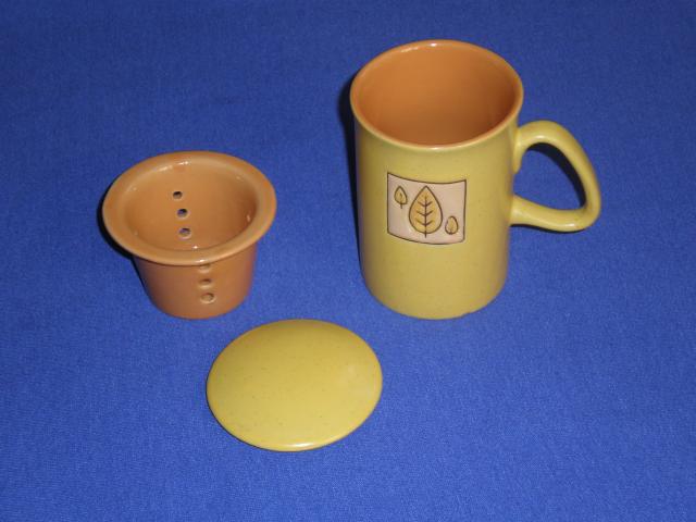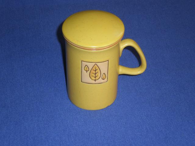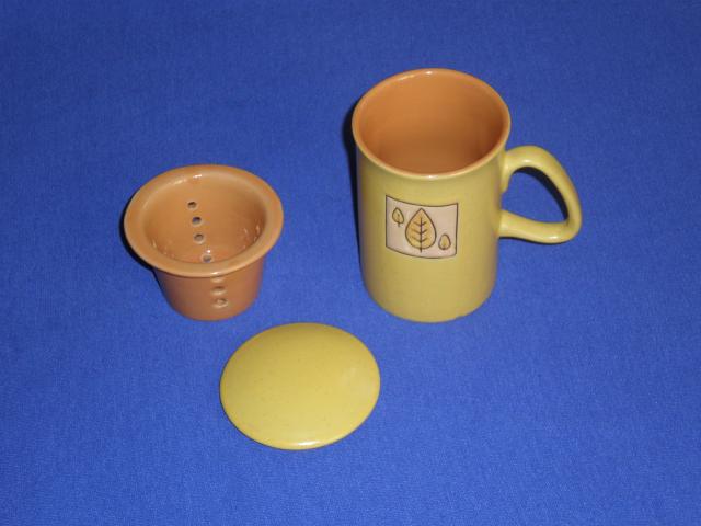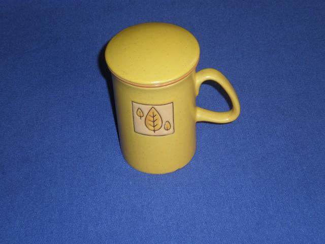 Gelsvos spalvos keramikinis puodelis su sieteliu kavai ar arbatai