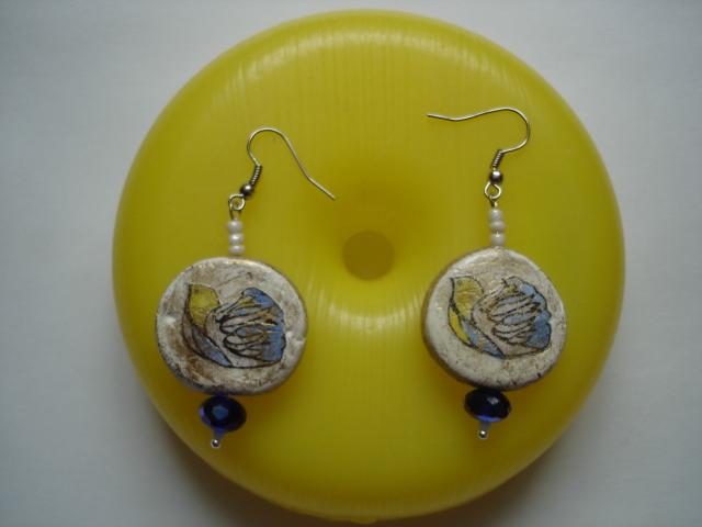 Rankų darbo, autoriniai auskarai su autoriniu piešiniu. Karoliukai, antialerginiai kabliukai.