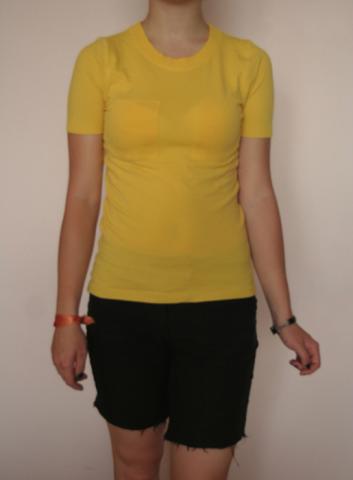 geltona aptempta polisterio maikutė su dviem stačiakampiais lopais krūtinės srityje. firma - ,,Zara''