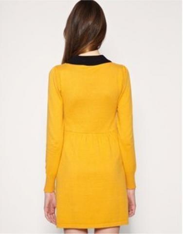 Apie prekę: Geltonos spalvos suknelė ilgomis rankovėmis su juoda apykakle, kuri suknelei suteikia stilingumo. Liemuo paaukštintas. Dydžiai: S, M, L Medžiaga: spandeksas, medvilnė Spalva: geltona Sezonas: visi