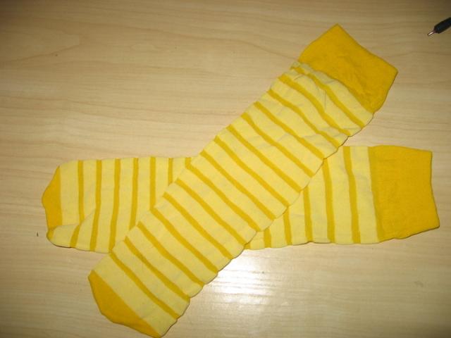 Geltonai baltai dryžuotos kojinytės nemūvėtos