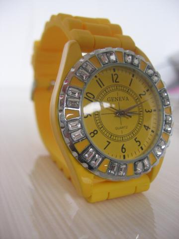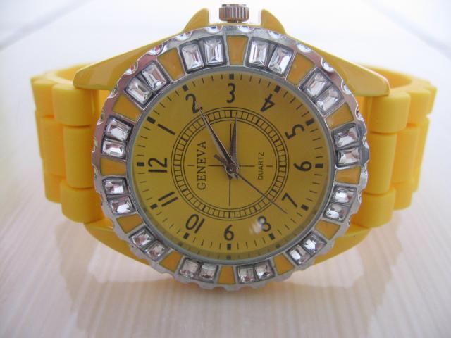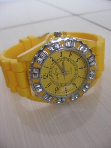 Geltonas laikrodis su deimantukais