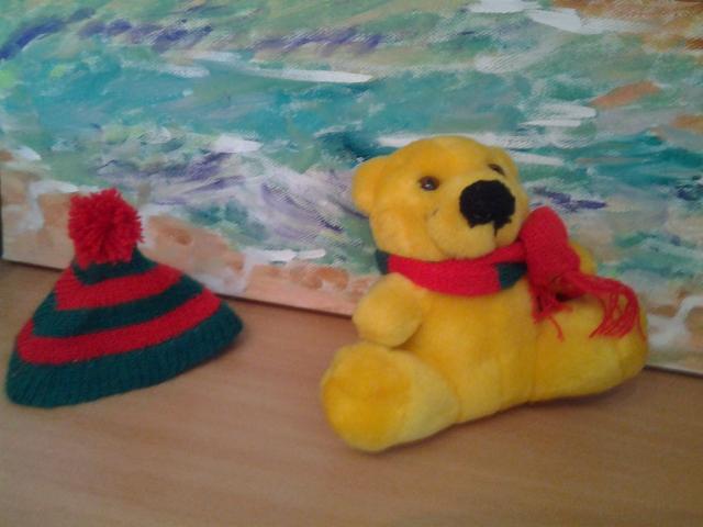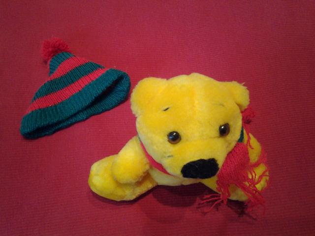 Meskiukas naujas, is Italijos. O kepure ir salika uzdejau nuo kito zaislo -pingvino. Pingvinas be kepures ir saliko buvo padovanotas Igoriui Kofui per jo gimtadieni :-)