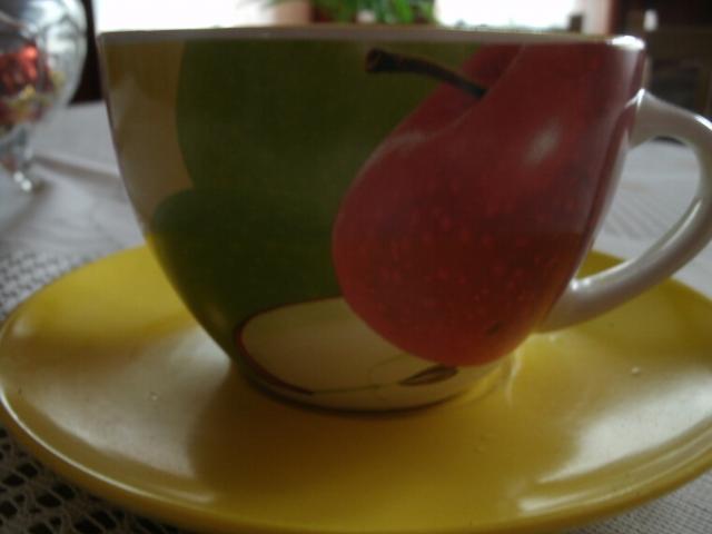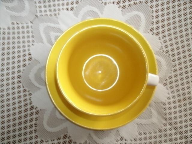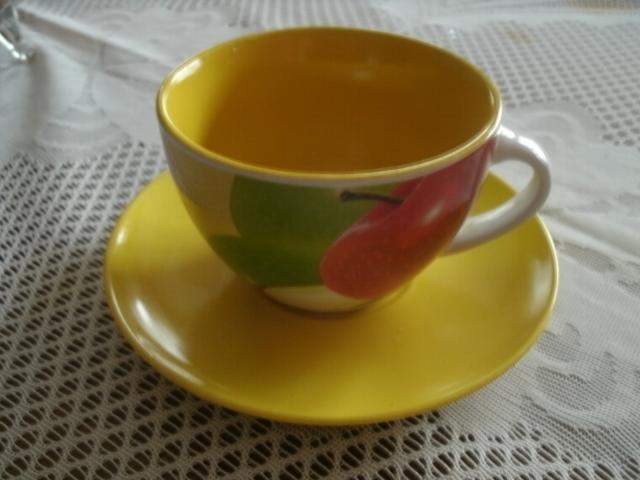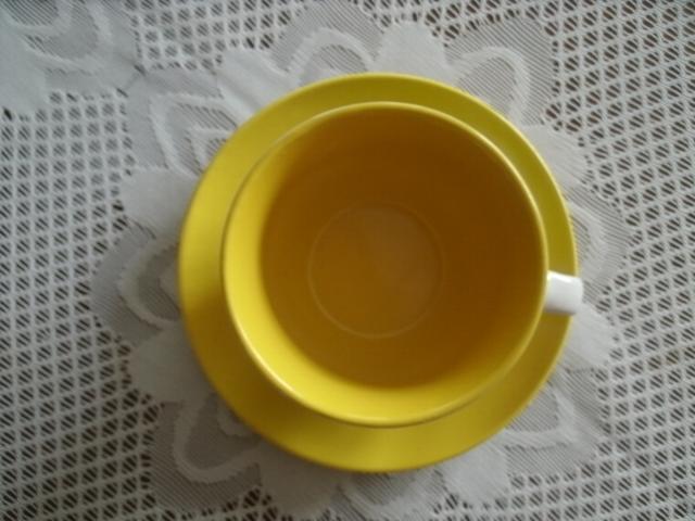 Geltonas puodelis su lėkštute