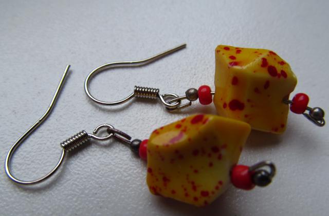 auskariukai is geltonu karoliuku, labai mieli, nauji ; )