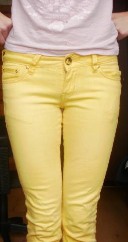 Šaunūs geltonos spalvos džinsai, mažai dėvėti.