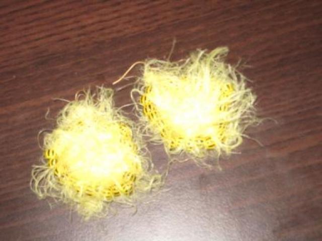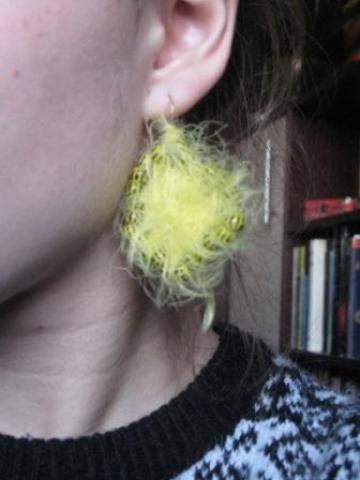 Geltoni pūkuoti auskarai