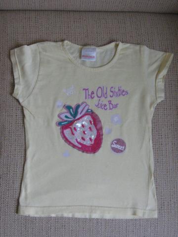 Geltonos spalvos palaidinė su braškyte, 140 cm (9-10 metų mergaitei).