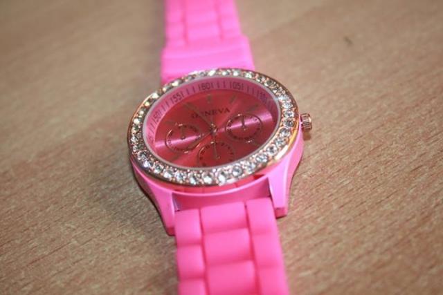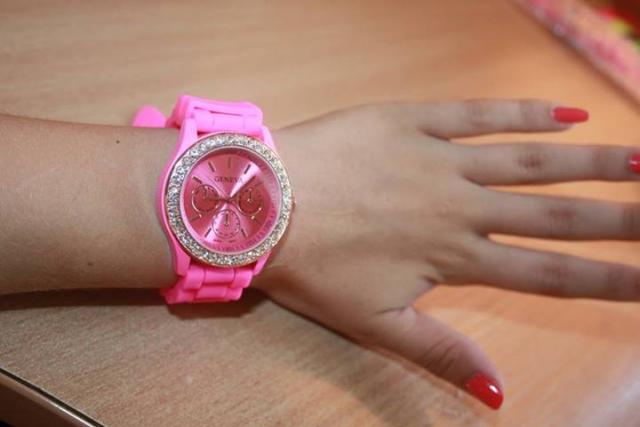 naujas geneva laikrodis, silikonine apyranke. rožinės spalvos.