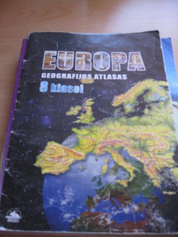 Geografijos atlasas (mokyklinis), vokieciu knyga, anglu vadovelis ir pratybos