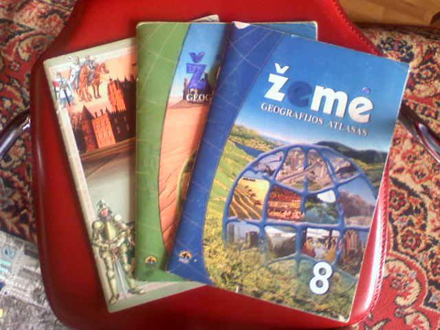 7 klases geografijos, 8 klases geografijos ir 8 klases istorijos. Biski apipaisytos (draugu) ir pan, bet tik ant virselio.