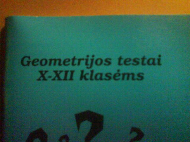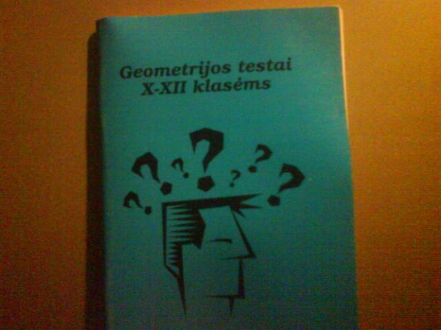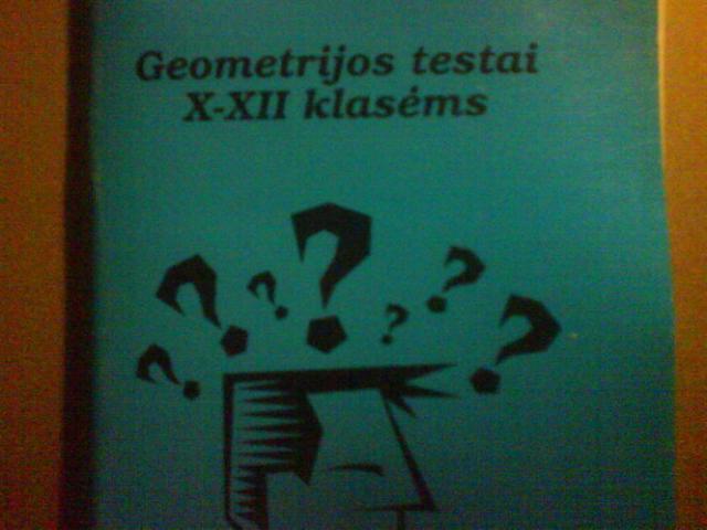 Nauja knygute su geometrijos testais vidurinei mokyklai knygute nera labai stora taciau testu daugoka (beveik 40) Testai daugiausia is teorijos, skatina ismokti formules, gale yra atsakymai