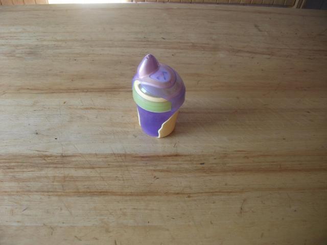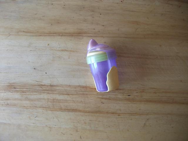 Plastikinė, išimamas mechanizmas, kuris neleidžia išbėgti gėrimui, o tik gerti, o išėmus nebereikia siurbti, lieka tik skylutės, bet gali išbėgti gėrimas tokiu atveju - didesniam vaikučiui. Dangtelis.