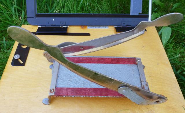 Dvipusė nuotraukų karpyklė-giljotina, viena pusė pjauna lygiai, kita ornamentuotai