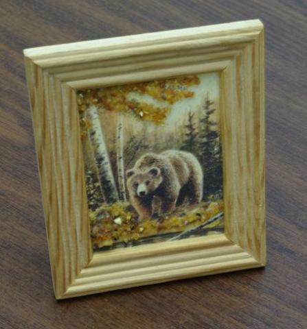 Mielas gintarinis paveikslelis, 11.5 x 10 cm dydzio.