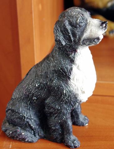 10cm aukščio, 5cm pločio juodojo retriverio šuns statuetė. Puikiai tiks kolekcijoms. Labai senas, vietomis nulupti dažai lengvai paslepiami markeriu
