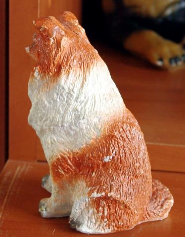 8cm aukščio, 3cm pločio. Labai senas, vietomis nulupti dažai lengvai paslepiami markeriu. Truputi apipaišytas vaikų. Puikiai tiks kolekcijoms. Yra kitų šunų statuečių.