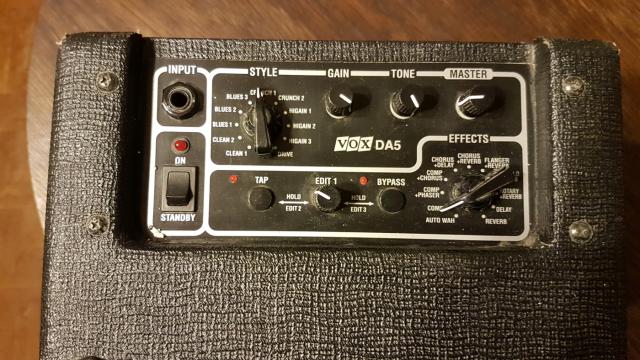 Gitarinė kalonėlė Vox da5 su efektais. Gali groti nuo baterijų