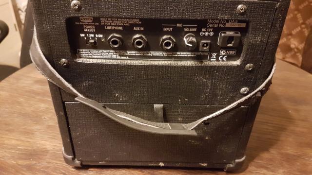 Superinė kalonėlė gatvės muzikantui. Galima pajungti gitarą ir mikrafoną, yra gitariniai efektai. Galima susidėjus maitinimo elementus groti bet kur kur jums norisi ar patogu.