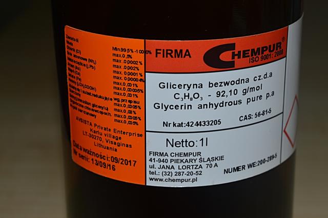 Glicerinas.Pirktas iš Asvistos,mokėjau daug + 10 lt siuntimas.Liko pusė,maždaug 500 ml