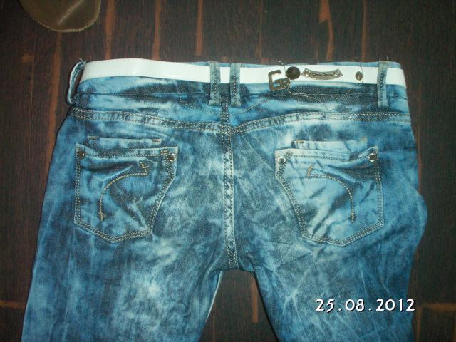 nagli dzinsai :D plona medziagyte. Zemu liemeniu. Be defektu.. Dominuoja balta-sviesiai melyna spalva