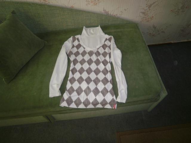 balta golfyte, priekyje su tokias rastais, nugaroje susirisa sniurelis. Noreciau 30lt.