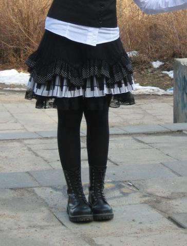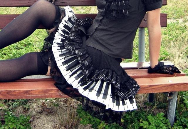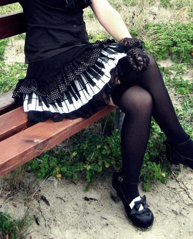 Gothic, lolita stiliaus sijonas, pustas, pianino klaviaturos rastu. Pirktas fantasmagoria parduotuveje, moketa uz ji labai brangiai, todel kainos labai nuleisti nenoriu. Nesiojau tik pora kartu fotosesijoms, todel galima sakyti naujas, kokybe labai gera. dydis universalus.