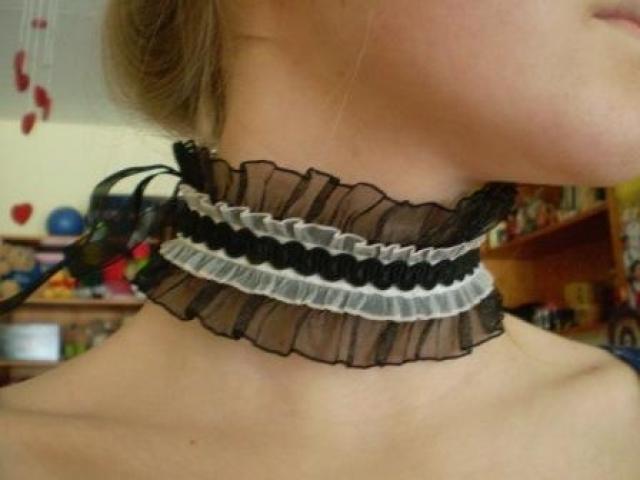 Beprotiškai gražus medžiaginis papuošalas, net nežinau, kaip lietuviškai jis vadinasi, angliškas priskiriamas prie 'necklace'. Parsivežtas iš Austrijos ir pakankamai brangus, vis neapsisprendžiu, ar tikrai noriu jį mainyti.