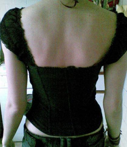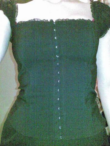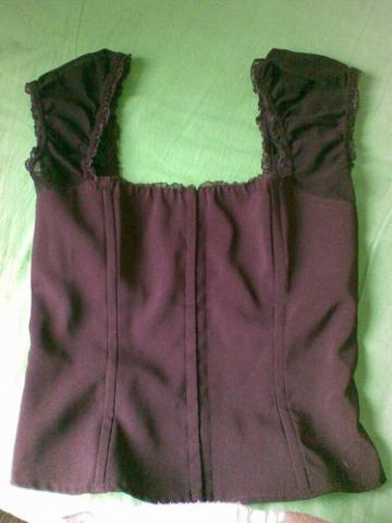 juoda bliuskute. panasiai aptempia kuna kaip korsetas. su mazais raukinukais pagrazinimui. dydis 16