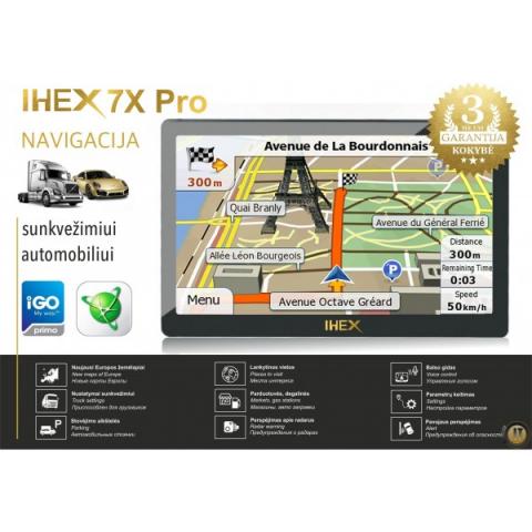 PATS GREIČIAUSIAS NAVIGATORIUS IŠ WINDOWS CE 6.0 SERIJOS. NAUJAUSIAS GPS navigacijos modelis IHEX 7X Pro, 7" ekranas. Neįtikėtini parametrai stebina valdymo, maršrutų skaičiavimo parametrai. IHEX 7X Pro navigacijoje integruotas 800 Mhz procesorius, dvigubai daugiau nei įprastai RAM atminties 256MB, vidinė atmintis sudaro net 8GB. Šio modelio dizainas stebina estetiška išvaizda, ekrano ryškumu, nugarėlės faktūra + jau iškarto yra apsauginė ekrano plėvelė! Kodėl verta įsigyti šią GPS įrangą? DAUG ATMINTI