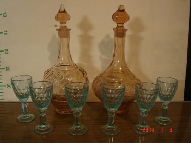 Seni grafinai ir sesi stikliukai.Grafinai po 50lt.Stikliukai 100lt