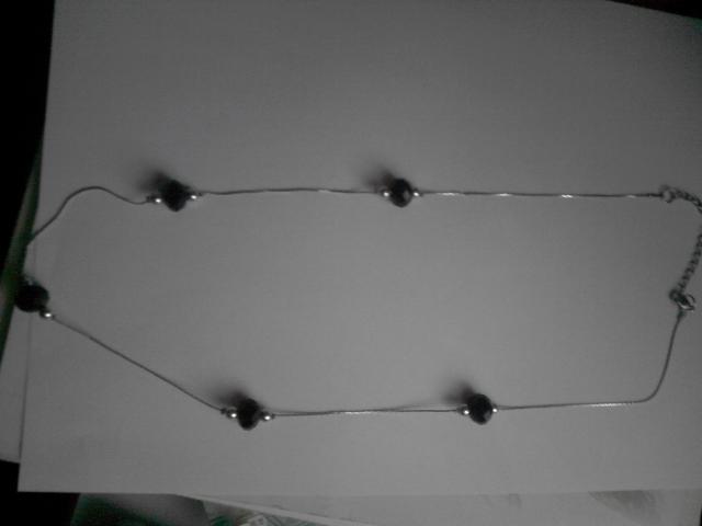 Grandinele ant kaklo su juodais smaragdiniais karoliukais
