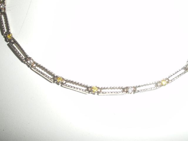 Sidabrinė grandinėlė su gelsvais ir baltais deimantukais.