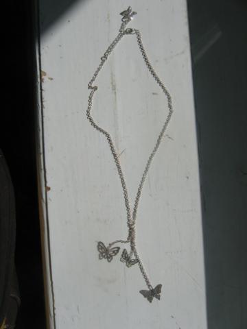 Gavau dovanų prieš porą metų, pirkta ibero. Pati grandinėlė sidabrinė, o drugeliai įtariu nelabai. Nė karto nebuvau užsidėjus
