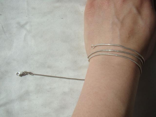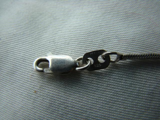 Sidabrinė grandinėlė ant kaklo.