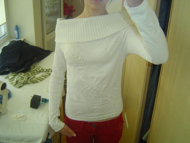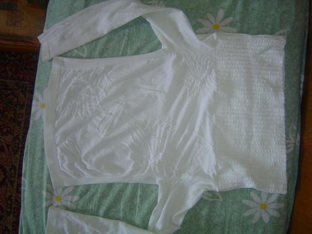 Balta maike, grazi, miela kunui, parasyta jog dydis M/L taciau sakyciau S/M/L , ant L butu labai apsitempusi, nes labai labai tamposi ji. Pati ja issimainiau, bet neiseina prie nieko priderint, nors labai patinka, tai nesinori , kad dulketu spintoj :