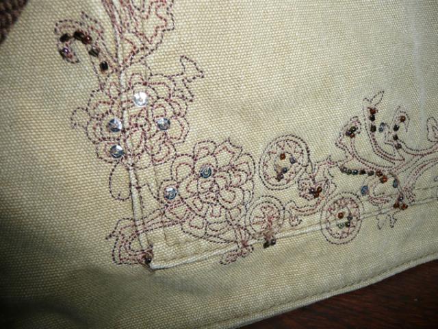 Gražus siuvinėtas raštas. Nedidelė. Viduje yra šiek tiek dėmelių, išorėje kaip ir tvarkinga.