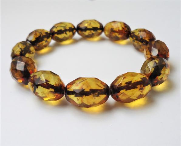 Labai graži naturalaus gintaro facetuota apyrankė. Svoris 16gr. gintaro diametras 18mm.