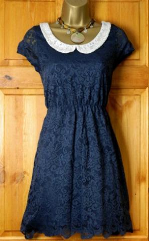Nauja, mėlynos spalvos , gipiūrinė suknutė, (pirkau sau, bet man per maža, etiketė perkirpta) Išmatavimai: per krūtinę 50x2, per liemenį 40x2 , bet gali ir daugiau, nes yra ant gumelės, per klubus 58x2 ilgis-85cm