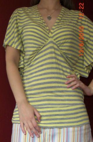 labai grazi vasariska palaidine, geltonos su pilku spalvu :) nemaza iskirpte, rankoves placios, atrodo tikrai super! galima uzsideti dirza po krutine bus dar geriau :) universalus dydis, raso S, bet tikrai tiktu ir m ir netgi xs :)