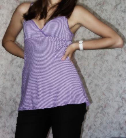 Vasariška palaidinė su petnešėlėmis. Nuo krūtinės platėja, todėl tiks bet kokio sudėjimo ar aptemptų rūbų nemėgstančioms merginoms. Išmatavimai: ilgis 48cm, plotis po krūtine 35cm.