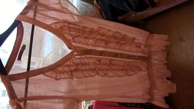 Moteriška palaidinukė, ilgis - 62 cm, S dydžio, gamintojas - firma "Saint Tropez" (Indija). Palaidinukė yra lengva ir iš plonos medžiagos, permatoma. Būklė - gera, kaina - 3.40.