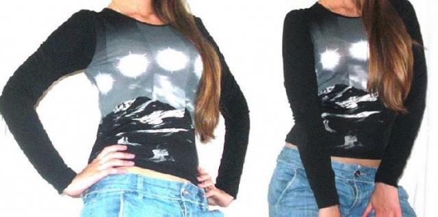grazi juoda palaidinuke, kurios priekineje dalyje matomas kalnu horizontas ;) ilgomis rankovemis ir gana plonute todel nesilta net vasara ;)