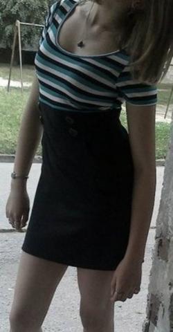 Paprasta grazi suknele, wirsus melynas, daugiau juoda, dar yra kelios sagutes + atsiuntimas