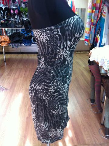 Vasarinė trumpa, marga suknelė, priekyje atsisega užtrauktukas iki galo.