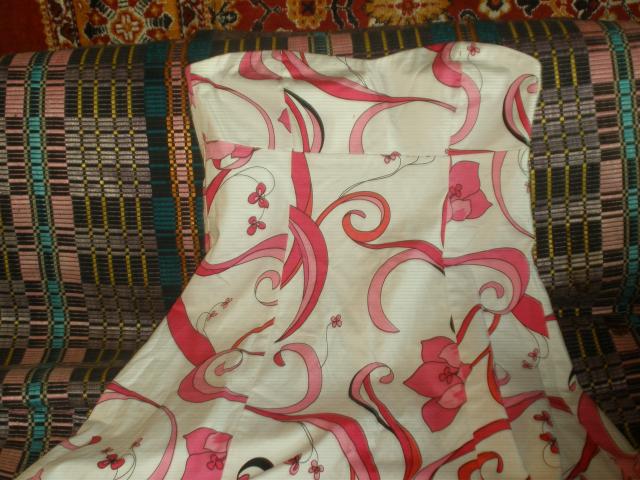 Nauja, labai graži vasarinė suknelė. Buvau užsidėjusi tik į vestuves (1 kartą, būdama pamerge) Balta, su rožiniais ornamentais :) Mokėjau 65 lt, parduodu už 26 lt.