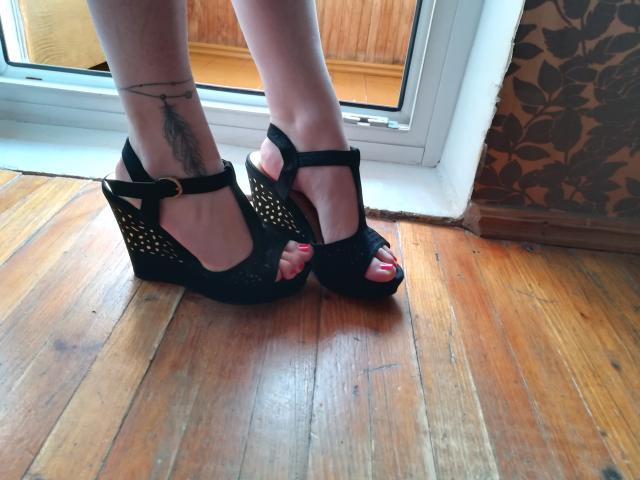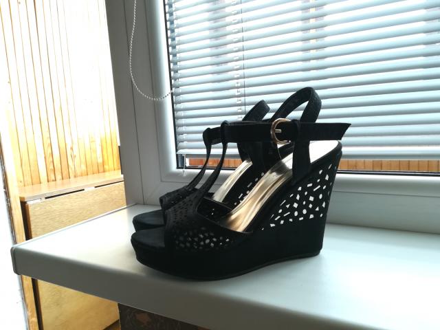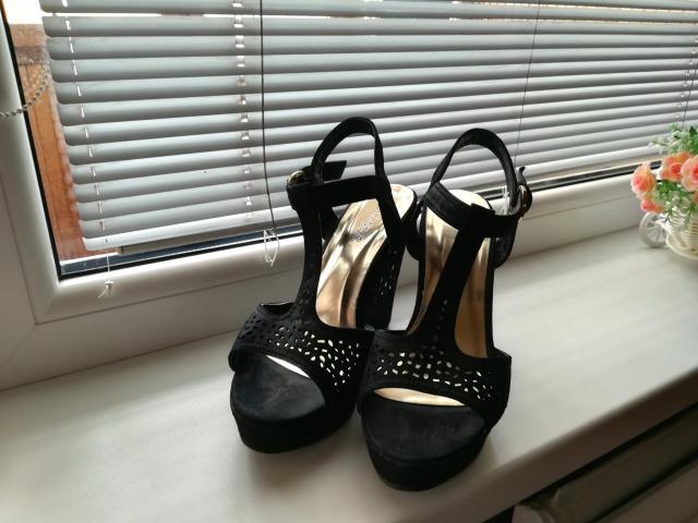 Labai patogi platforma - 12 cm,priekyje platforma apie 2 cm. Du kartus apsirengiau. Dydis 37-38.Siuntimo kaina įskaičiuota į visą sumą.Mano telefono numeris - 864622497. Sabina. Kalbu rusu ir lietuviu kalbu.